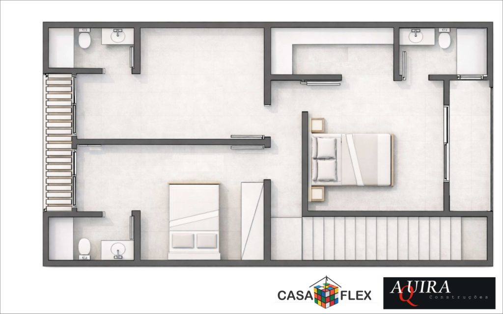 São 165,40 metros quadrados distribuídos em dois pavimentos
