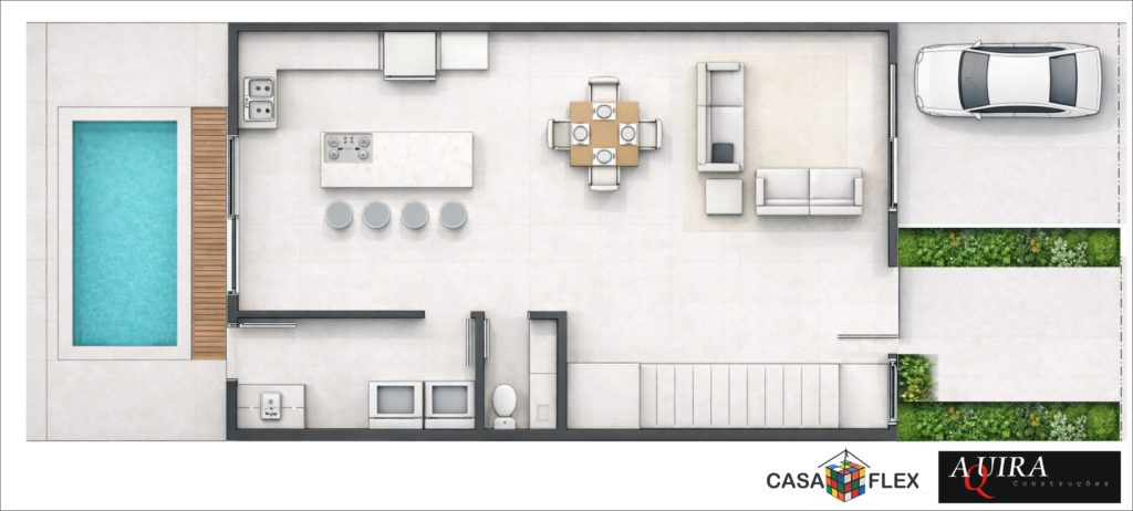 A casa Eleven SIX foi desenvolvida para terrenos com 6 metros frontais e 25 metros de fundo.