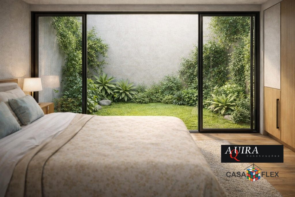 Detalhes que fazem toda a diferença, como este dormitório com um jardim de inverno exclusivo, podendo se tornar um Home Office super funcional.