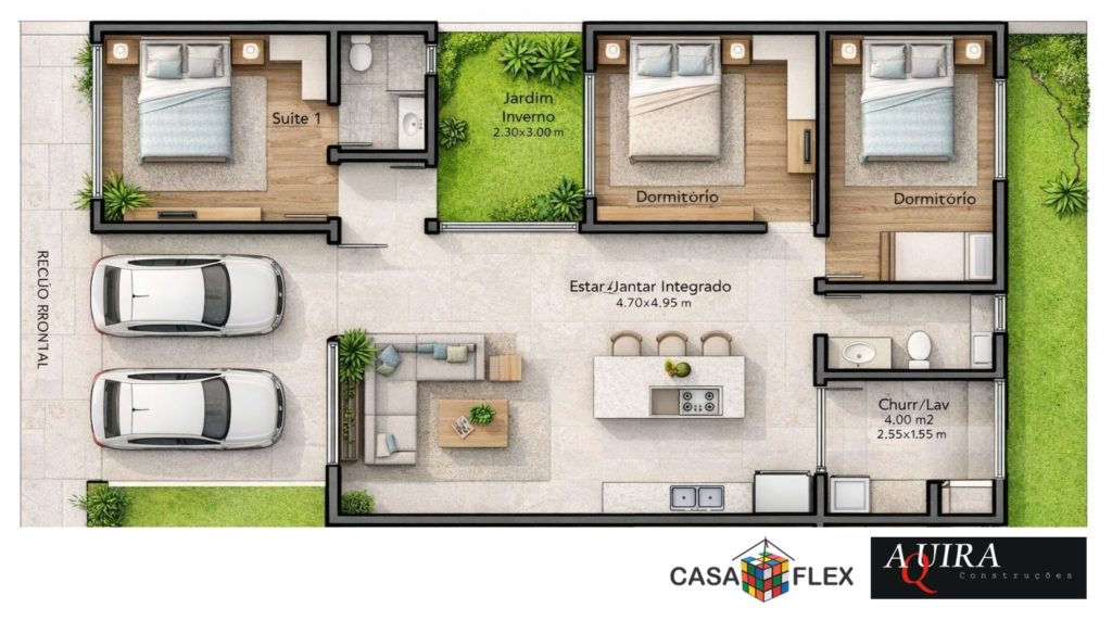A casa Veredas Eight foi desenvolvida para terrenos com 8 metros frontais e 20 metros de fundo.